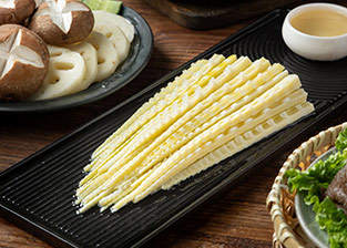 小竹筍制成菊花筍,涮火鍋、湯鍋,味尤佳。